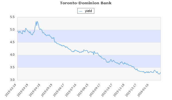 Toronto-Dominion Bank (TO:TD) Finance 130.18 78.06 134.50 92 4.32 0.00 11.24 2.18 3.32 Oct, Jan, Apr, Jul,
