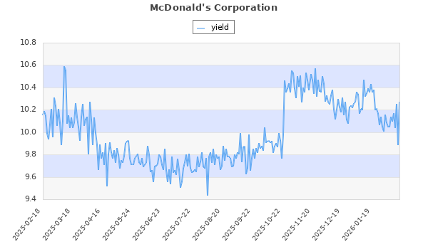 McDonald's Corporation (NYSE:MCD) Food 452.56 386.31 457.45 93 10.27 0.00 27.41 4.25 2.27 Sep, Dec, Mar, Jun,