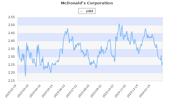 McDonald's Corporation (NYSE:MCD) Food 452.56 386.31 457.45 93 10.27 0.00 27.41 4.25 2.27 Sep, Dec, Mar, Jun,