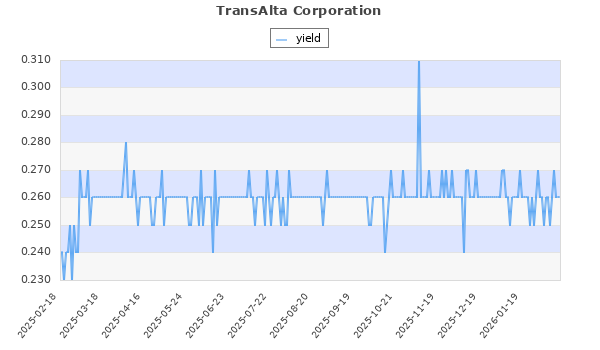 TransAlta Corporation (TO:TA) Utility 18.16 11.16 25.03 50 0.26 0.00 0.00 0.00 1.41 Oct, Jan, Apr, Jul,