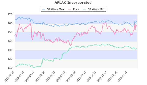 AFLAC Incorporated (NYSE:AFL) Finance 157.92 132.12 162.61 85 3.35 0.00 16.86 2.14 2.12 Feb, May, Sep, Dec, Mar, Jun,
