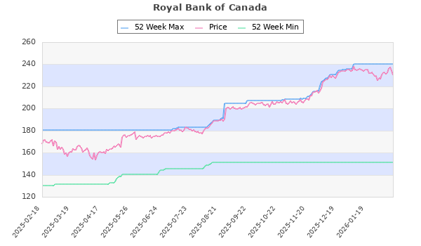 Royal Bank of Canada (TO:RY) Finance 230.49 151.25 240.34 89 6.55 0.00 16.38 3.85 2.84 Mar, Jun, Sep, Dec, Nov, Feb, May, Aug,