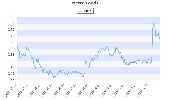 Metro Foods (TO:MRU) Food 96.64 89.64 109.20 36 1.62 0.00 21.53 1.16 1.68 Jun, Sep, Nov, Mar, May,