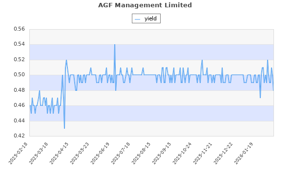 AGF Management Limited (TO:AGF-B) Finance 18.06 8.65 19.16 90 0.48 0.00 9.86 0.62 2.66 Jul, Oct, Jan, Apr,