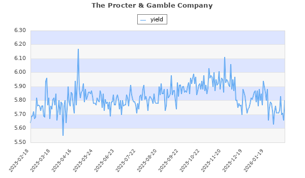 The Procter & Gamble Company (NYSE:PG) Health Care 219.70 187.55 245.29 56 5.80 0.00 23.72 2.56 2.64 Aug, Nov, Feb, May,