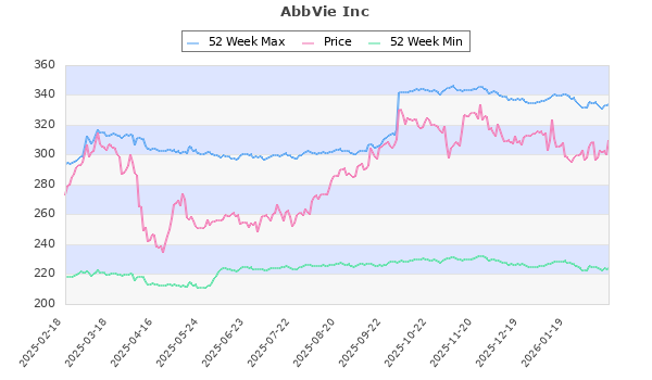 AbbVie Inc (NYSE:abbv) Health Care 310.04 224.03 333.63 78 9.27 0.00 174.67 3.69 2.99 Aug, Nov, Feb, May,