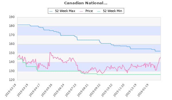 Canadian National... (TO:CNR) Transportation 145.91 126.11 152.12 76 3.65 0.00 19.35 2.08 2.50 Jul, Sep, Dec, Mar, Jun,