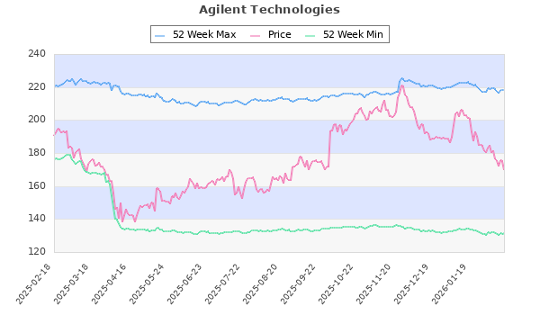 Agilent Technologies (NYSE:A) Technology 170.19 131.41 218.42 45 1.38 0.00 27.52 2.17 0.81 Oct, Jan, Apr, Jul,